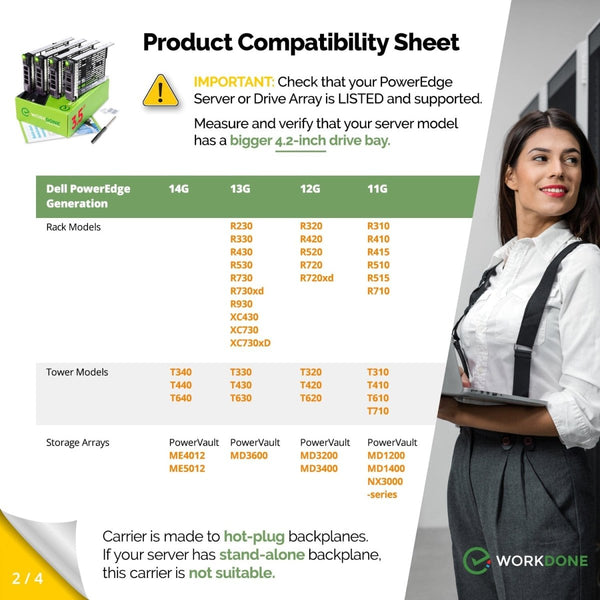100% Compatible: Works seamlessly with Dell PowerEdge 11th-13th generation servers with hot-plug 3.5-inch drive bays - compatible with original part numbers 0KG1CH, X968D, F238F