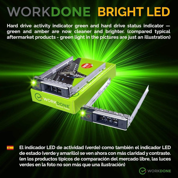 The perfect 2-pack for modern server deployments. Fully compatible with original Dell part numbers WH5D2, 0Y796F, 0X7K8W. Features exclusive WORKDONE Bright LED technology for superior drive monitoring in professional environments. This Dell 3.5 tray is a professional Dell caddy with Dell caddy 3.5 compatibility, featuring Dell caddies design with Dell disk tray, Dell drive caddy, and Dell drive carrier functionality.